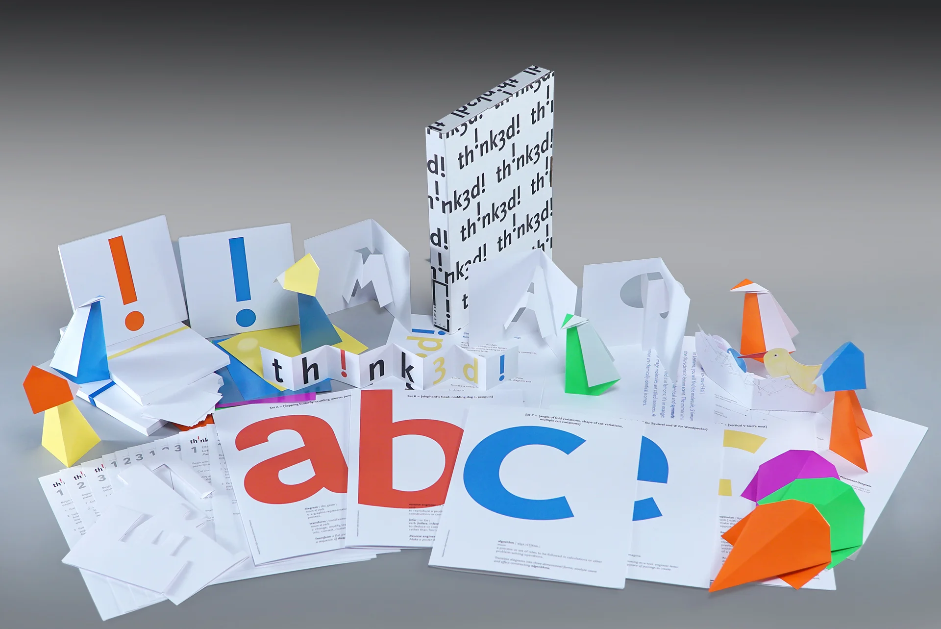Recycle/re-use: Students transform the 2-D paper contents of the think3d! box into 3-D models.
